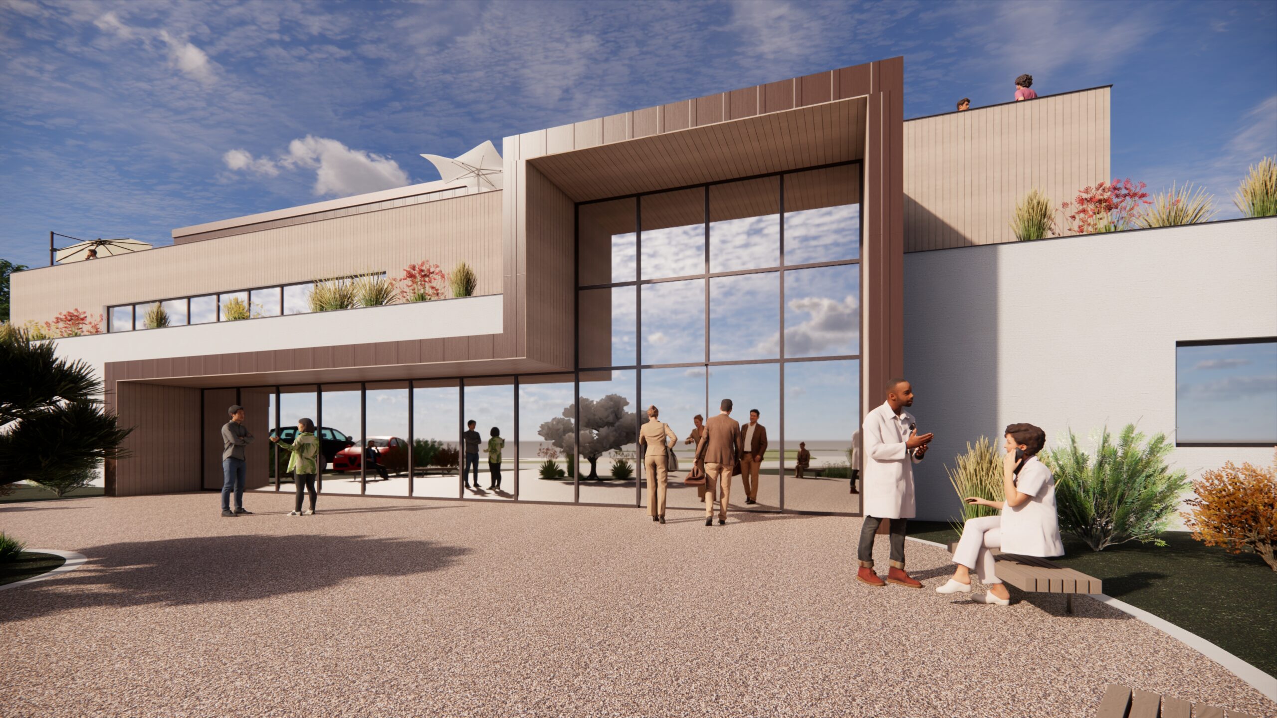 L’aménagement inclura des espaces verts et des zones d’attente agréables, créant un environnement convivial et apaisant. L’implantation des bâtiments et la gestion des flux offriront une lecture fluide de l’ensemble, facilitant l’accès et la circulation des patients comme des professionnels.